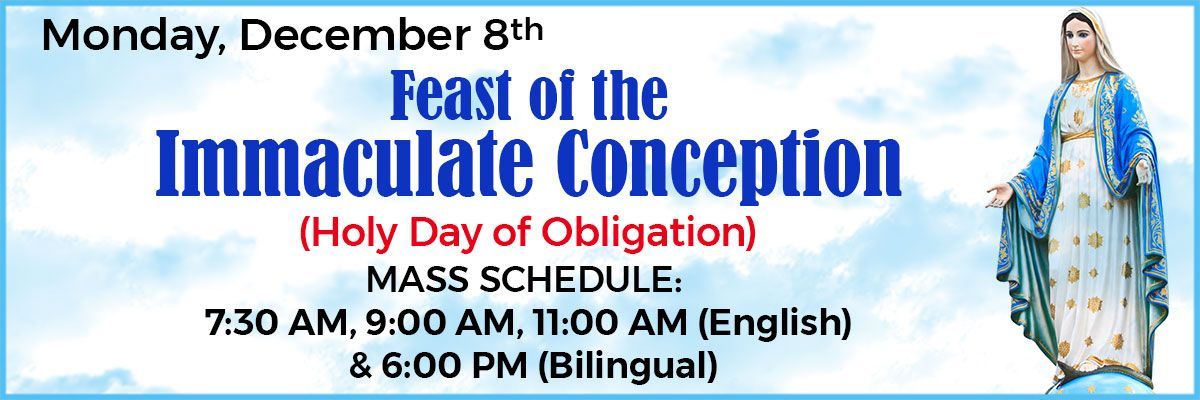 Holy Day of Obligation: 7:30 AM & 7:00 PM